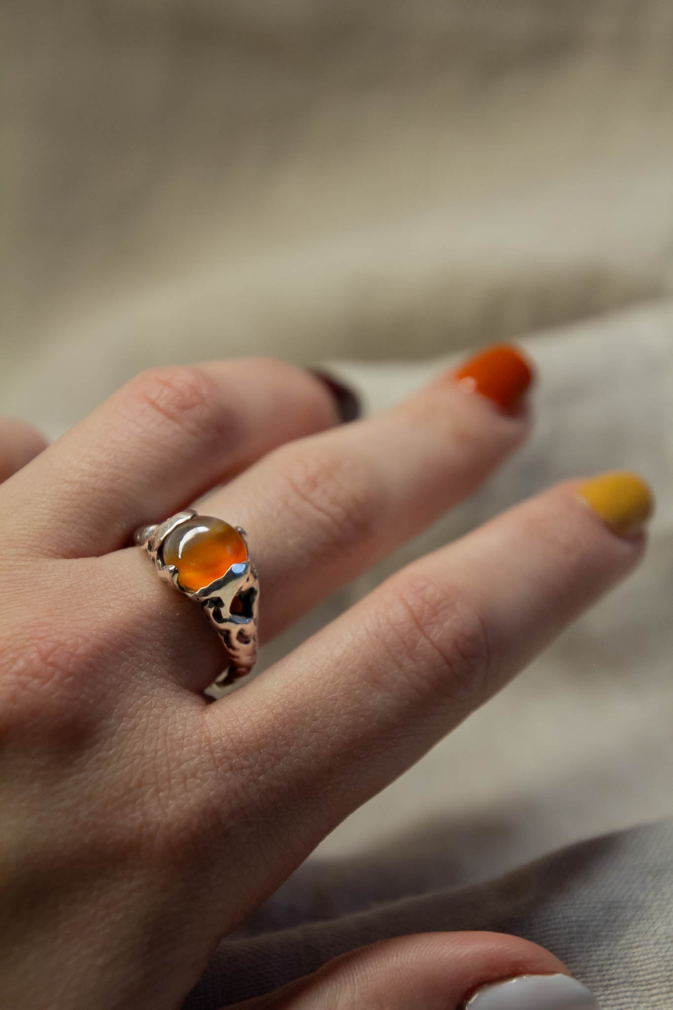 - Gemstone: 10mm Carnelian Cabochon